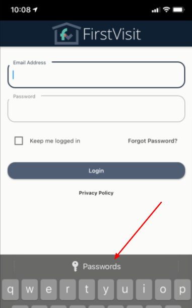 Now when you go to log in to the Caregiver app, you can select "Passwords" and choose the credentials you've entered. Your credentials will be securely stored on your device, and you won't need to type anything to log in to the Caregiver app!